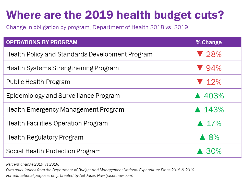 As of posting this article, the 2019 GAA is still being deliberated. This means that the final budget cuts to DOH are still unknown, but understanding how the budget was proposed originally in the NEP gives us a perspective on how the government is trying to be more effective in its duties. While this budget cut can easily shock anyone at first glance, it is important for us to understand how much more nuanced the situation is, and that we can use publicly available sources to paint a clearer picture of the context behind this.